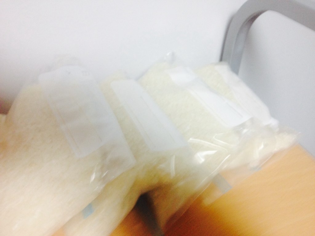 お米は、ファスナー付の袋に3合ずつ(私は3合ずつしか炊かないので)に分けて高くて風の通りのいいところに。